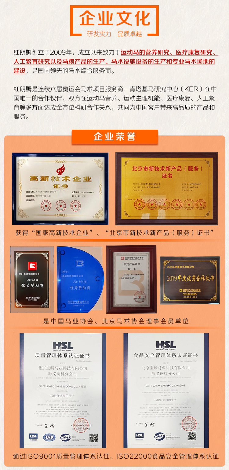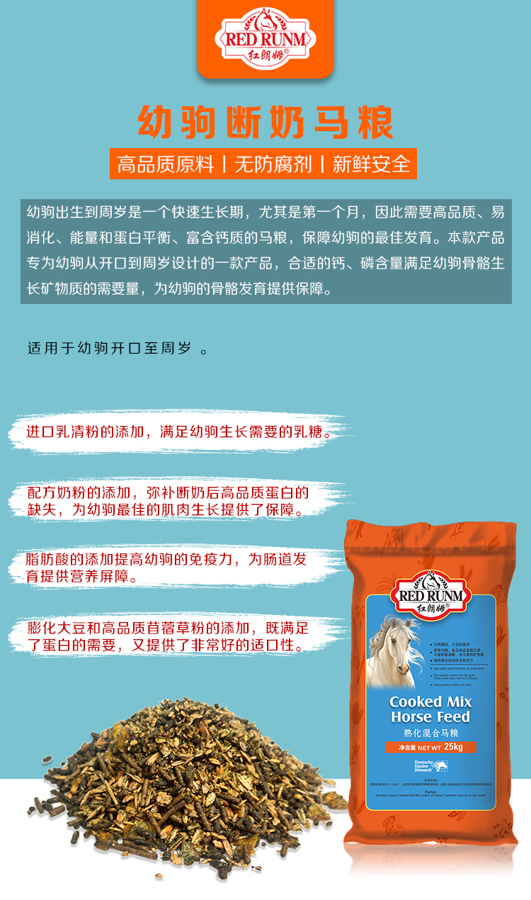 红朗姆系列马粮产品为您的马匹提供全面的营养解决方案,既服务于高水平竞技、比赛类马匹,如速度赛马、障碍赛马、耐力赛马等,也服务于繁育类马匹、俱乐部教学马匹、休闲骑乘类马匹和表演类马匹等。同时,我们也为有特殊需求的马匹提供定制营养方案,比如退役的老马、伤病恢复期运动马、需要高纤维日粮的马、需要进行体重管理的马等。